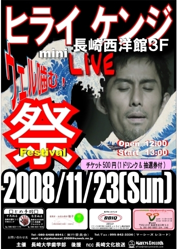 -PORTO LABEL&OFFICE HOWLING PRESENTS- ◆SASEBO DRIVE 08◆ 日時:11月23日(日)午後5時00分開場 午後5時30分開演 出演:騒音寺(京都)/FANTASYS CORE(長崎)/Howling Setta(佐世保)/ザ☆ホネホネロックス(佐世保)/Shigulism(長崎) -Opening Act- DONK!(佐世保) チケット:前売 ¥2000/当日 ¥2500 チケット取扱店:スタジオ ドッグス/ワイワイ貿易 *昨夏の衝撃も記憶に新しいポルト&ハウリングの共同企画によるスーパーロックイベント! 今年は、京の都より、村八分等の京都伝統のR