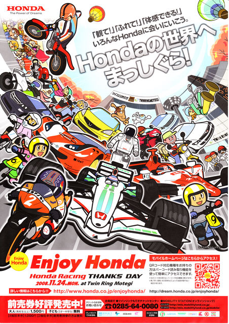 毎年恒例のHonda Racing THANKS DAY in 2008 開催日が11月24日(月)に決定となりました 観て!触れて!体感できる! いろんなHondaに会いにいこう るねっさ〜んす ちなみにつ〜りんグ〜ですよぉ ・・・たぶんが降らなければっっっw 多数のご参加お待ちしておりマンモス 詳細が決定次第、ここにアップしていきます。 参加希望者は、某てんちょまで http://www.honda.co.jp/enjoyhonda/thanksday/ http://www.mobilityland.co.jp/motegi/