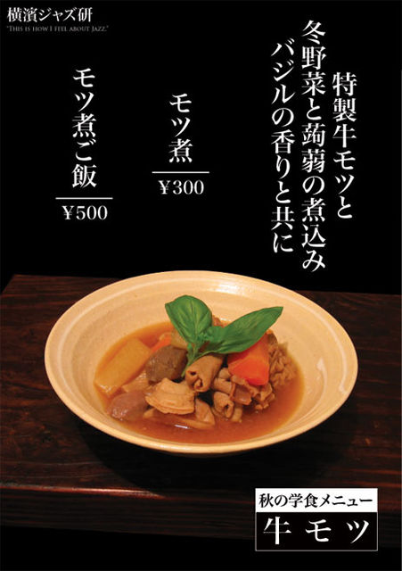 管理人様告知失礼致します。 ジャズ発祥の地・横浜で横濱ジャズ研、 11/29日(土)に第7回目を開催いたします! 毎度ご好評いただいており、 感謝です。 今回久は々にfoodが復活します。 学食担当はKenjiman。 安部氏のハウスパーティ、MARVELOUSのフード担当でもあった 彼の料理はプロの料理人並み。 食材にこだわり手間ひまかけた牛モツは 晩秋の冷えた身体を暖めてもらえるでしょう。 さらに限定で五穀米のモツ煮ご飯も用意しています。 毎回好評即完売のサングリアもございますので、 是非小腹を空かしてお越し下さい!