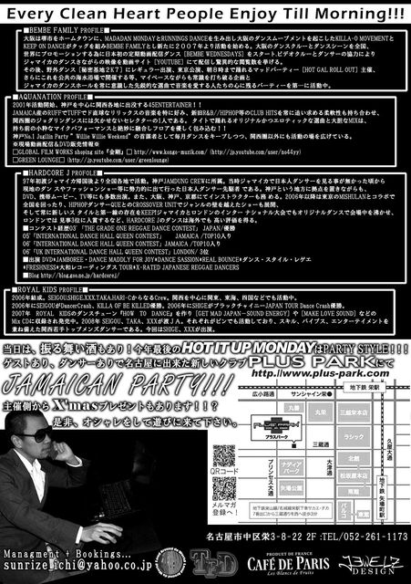 ゲストあり、ダンサーありで名古屋に出来た新しいクラブ PLUS PARKにてジャマイカンパーティー!!!
