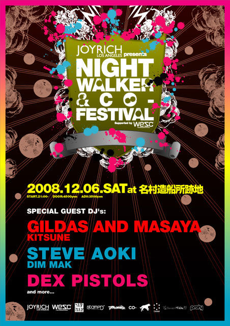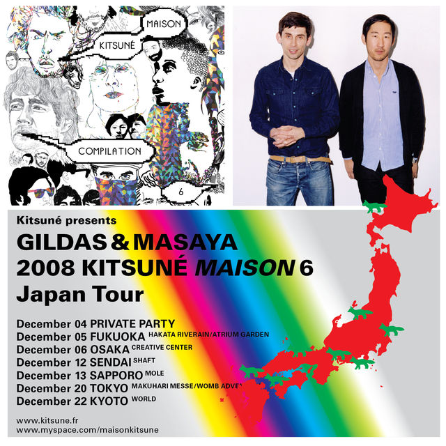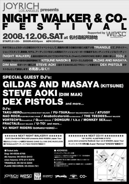 ※12/6(土)大阪名村造船所跡地にて、KITSUNE MAISON 6をリリースしたばかりのGILDAS AND MASAYA、DIM MAKのオーナー兼DJのSTEVE AOKIに加えて日本のELECTROシーンを牽引するDEX PISTOLSが一同に見れる貴重な機会です。