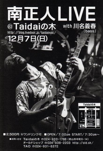 2週続けてすごいアーティストのライブです。 郡山、堂前のCoffee House「オールドシェップ」さんの ご紹介でTaidaiの木にお招きする事になりました。 第1段、 南正人(通称ナミさん)のライブがいよいよ今週末となりました。 はじめ、まさかとは思いましたが、 今でもナミさんが来るまで信じられないと言ったところです。 本当にうちで大丈夫か? と言う不安があったり、緊張してうまく話せなそう。。。 とか、、 ちょっとドキドキもんであります。 でもこんな機会はなかなかないと思って楽しみます。 リアルです。 この辺では