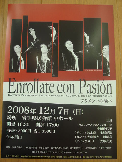 kayoko flamenco studio 発表会 vol.2 〜enrollate con pasion!〜情熱の渦へ〜 開場16:00 開演16:30 チケット 前売り3000円 当日 3500円 全席指定 出演 スタジオ生徒一同、中田佳代子 カンテ 大渕博光・阿部真 ギター 鈴木尚・小原正裕 ゲスト 大塚友美 気になる方、観に行きたい方、メッセいただければご連絡します^^ 是非どうぞ!!