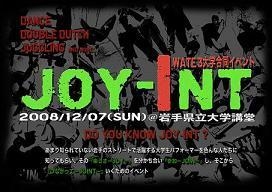 『JOY―INT vol.2』 開催決定!!! 日時/12月7日(日) 13:30開場 14:00開演 会場/岩手県立大学 講堂 入場料/500円(前売り・当日) 出演チーム/ 《DANCE》 Crazy Diamond(岩大&県大) 箸休め(盛大) SDMD1年(岩大) MACK BUBBY(岩大) JAINA(盛大&県大) FREEEEZE!!!!(岩大) 飛燕(北里大) Odds(盛大&県大) BLACK NUMBER(岩大) 偏リアル(岩大) SUB MISSION(岩大) ハナヤナギ(北里大) TROOPER(岩大) schreechy(盛大) 3FEET(岩大) 《DOUBLE DUTCH》 TOYJOY-Q(県立大