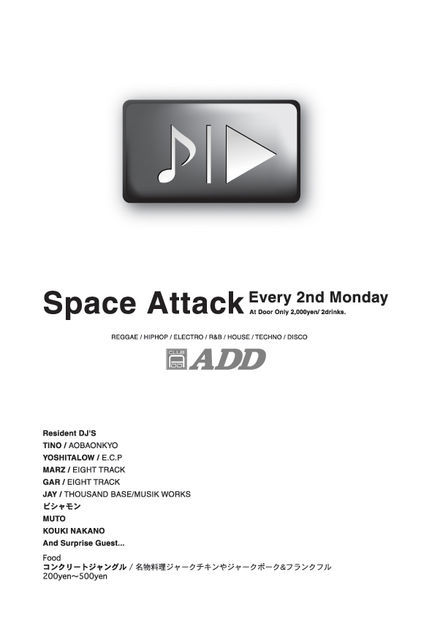 イベント告知 失礼します 8日月曜日 OPEN・20時〜 会場・立町ADD http://www.clubadd.com http://mixi.jp/view_community.pl?id=244356 ADD(http://www.clubadd.com/m)でレギュラーDJイベントを開催してます。 エレクトロ〜ハウス、テクノ、HIPHOP、 REGGAEなどジャンルレスに選曲中です。 最新の音を聞きながら飲みましょう。 CAST: JAY(THOUSAND BASE) DJ MARZ(EIGHT TRACK) DJ GARI(EIGHT TRACK) NO DOUBT TRACKS official web site http://nod