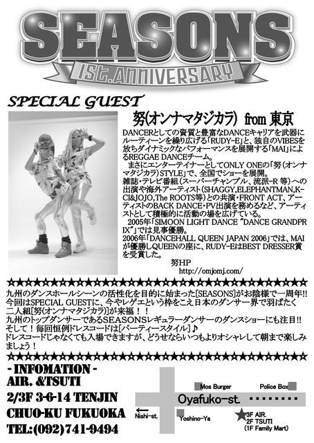 TICKET:2000円(前売り) 2500円(当日)要1DrinkOrder