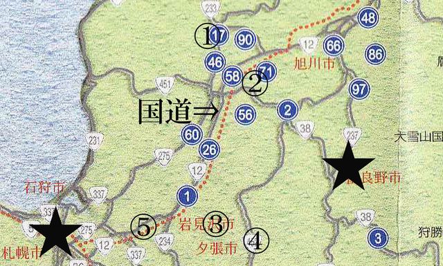 みなさ〜〜〜ん、集まりましたか? あっ!熊オッパさん、ねちゃ〜いけません。 冬眠時期ですが現在は旅行中ですからいけませんよ それでは、出発しま〜〜す 今回は右の★富良野市(ふらのし)から左の札幌市(さっぽろし)へ移動しますよ。 お勧め食材はやっぱり写真1内(2)の滝川市(たきかわし)の「ジンギスカン」ですねぇ。(4)の夕張市(ゆうばりし)のメロンもはずせないね 近隣の町もメロンの産地になってますのでそちらもご堪能あれ でも私・・・メロン苦手です 写真1内(1)は北竜町(