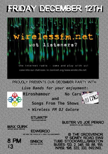 のーかーず、南でライブします。 12月12日10時30分にオンステージ。 場所 Grosvenor (Tube stockwell) 誰も読んでなくっても、私はこのコミュニティを続けていきます。 書き続ける事に意味がある。 みんな読んでないからって変なことも書いてやる。 うんこ
