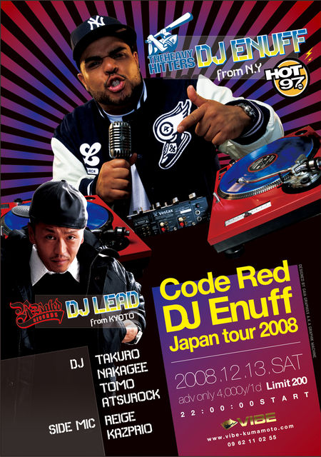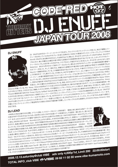 New York No. 1 のラジオステーション HOT 97 より、DJ ENUFF が熊本の club VIBE に登場!!!