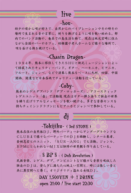 price:当日 men 4000yen women 3000yen 前売り men 3500yen women 2500yen
