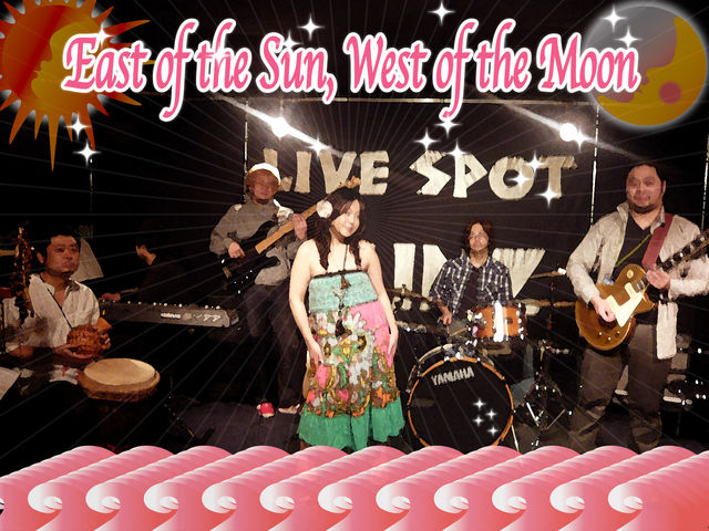 "East of the sun , West of the moon" 4度目のLiveのお知らせです♪ 3週末連続Liveのトドメ、年内ラストです!!!!! 今回は再び"DREAMS COME TRUE SESSION"にゲスト参加 約50分のフルライブ。 たっぷりお楽しみ下さいませ(←拷問とかいわないでね) 松戸馬橋 Livespot OLINZ http://homepage2.nifty.com/olinz/top.html 5:30pm open 6:00pm start charge \1800(1drink込) East of the sun , West of the moon は 7:00pm 頃の登場予定です