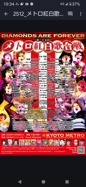 2025 12 30 tue @ KYOTO METRO - 第35回メトロ紅白歌合戦 - Open/Start 10:00〜 \2.500 (w/1drink) Food PELGAG DJ LaLa DJ kor シモーヌ/フランソワ/アフリーダ/そよ風/ショコラ/カルミナ/べべ/モリエ/ロビン/ダイアナ/ブブ/ケイ&ユーキ/ムサシ&マサリ/シュンイチ and more