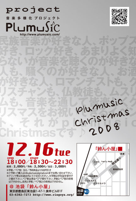 おそらく日本で唯一!? 「多様性」をコンセプトとする音楽イベント・シリーズ。 音楽のジャンル、形態、ミュージシャンの国籍、地域、楽しみ方、、etc これらの多様性を可能な限り尊重する空間を作ります。 ということで、この一年間4回ライブを企画してきましたが、 今回はクリスマスの月ということで、多様性に加えて 愛と平和にもあふれたスペシャルイベント! 最高の音響と有機創作料理のある素足で上がるライブハウス「鈴ん小屋」で、 いままで登場してくれたミュージシャンも、初登場のアーティストも含めて、 特別なコンサートに