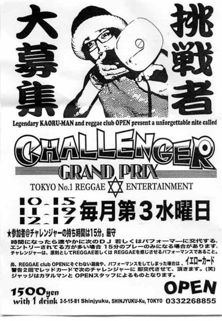 DJ出場者募集 チャレンジャーGP[グランプリ] 参加費¥1500円(1DRINK+秘密の夜食付き) ・チャレンジャーは、引き続き従来のルールと同じジャッジシステムです。 チャレンジャー[GP]では チャレンジャーの皆さんが、DJプレイ際に、、、 セレクションキーワードをくじ引きで決めて、、、 見事キーワードをDJセレクションで的中すると素敵なプレゼントをご用意しております。 ゲーム感覚の、DJプレイに大好評イベント! 寒くなってきたので、ホット青汁を用意しておりますよ!! 是