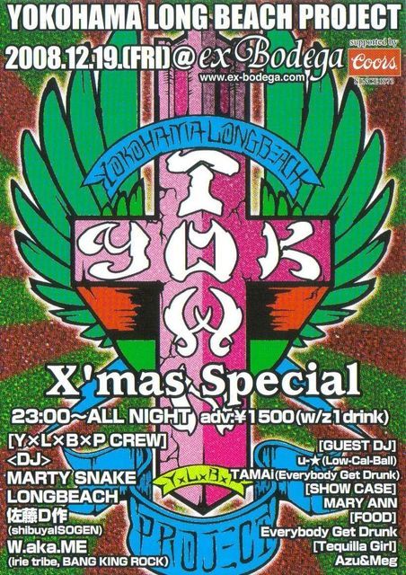 第7回開催されます!! 今回は東京No.1イベントLow-Cal-BallからDJ u-★ そしていつもフードで手伝ってくれてるEverybody Get Drunk からDJ TAMAi そして先月復活ライブを行ったMARYANNがSHOW CASEとして アコースティックで参戦!! 年末に相応しい面々でお送りする今回! 是非皆さん遊びに来て下さい!! 『YOKOHAMA LONG BEACH PROJECT vol.7』 ■12月19日(金)@ex bodega start/23:00 Door/\1500 [Y×L×B×P CREW] <DJ> MARTY SNAKE LONGBEACH 佐藤D作(shibuyaISOGEN) W.aka.ME(irie tribe, BANG KING