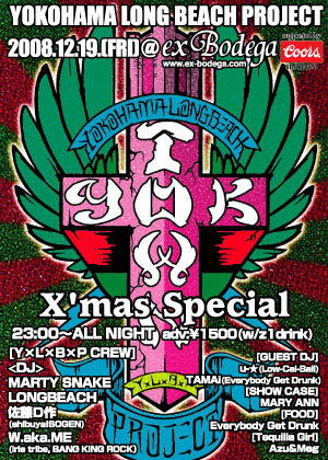 告知失礼します! 今月19日、今年最後のYOKOHAMA LONG BEACH PROJECT開催間近!! GUEST DJにLow-Cal-Ballからu-氏と毎回FOODでのサポートでもお馴染みEverybody Get DrunkからTAMAi氏を迎え、Show Caseには先月から再始動で目が離せないMARY ANNが登場!! 爆音と共にex bodegaでお待ちしてます。 〜supported by coors〜 【YOKOHAMA LONG BEACH PROJECT Vol.7〜YxLxBxP Christmas Special〜】 ■12月19日(金)@ex bodega START/23:00 DOOR/\1500(w/z 1drink) [Y×L×B×P CREW] MARTY SNAKE LONGBEACH 佐藤D作(shibuyaIS