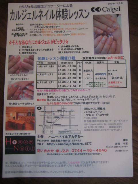 このたび、カルジェルの良さをもっと知っていただきたいので、 橿原市 レンタルスペース サロン・ド・コケットにて 体験レッスンを開催することになりました。 ご興味のある方は是非お問い合わせください!!