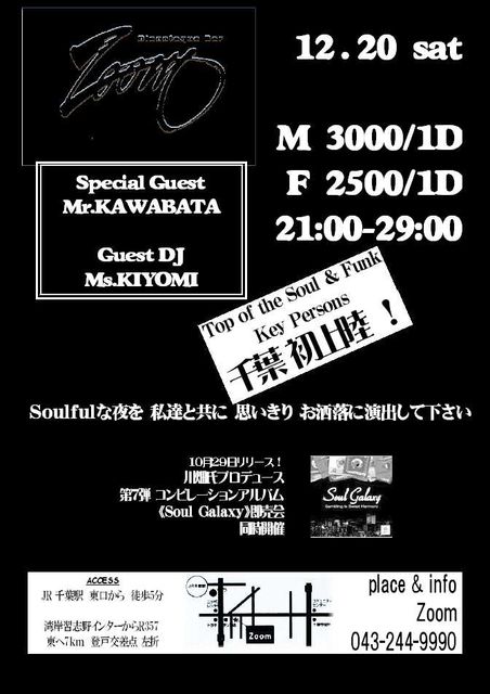 ♪Silent Night by Temptations♪ ★*゚*☆*゚*★*゚*☆*゚*★ クリスマスに一番近い ★*゚*☆*゚*★*゚*☆*゚*★ ウィークエンドは ★*゚*☆*゚*★*゚*☆*゚*★ 〜〜お洒落に〜〜 ★*゚*☆*゚*★*゚*☆*゚*★ 〜〜Soulfulに〜〜 ★*゚*☆*゚*★*゚*☆*゚*★ ■12月20日(土) ■20:00 OPEN ■21:00 START ■29:00 CLOSE 千葉 初上陸!スペシャルゲスト ★Mr.KAWABA(赤坂Miracle) http://mixi.jp/view_community.pl?id=255354 同じく初上陸!ゲストDJ ★ KIYOMI http://mixi.jp/show_friend.pl?id=4345