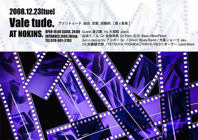 本物の音楽を聴いたことがありますか?本物の生音、本物のDJプレイ、 本物と本物がみせる本気の勝負をお見せいたします。DJ、生音のそれぞれの良さを味わってください。真のミュ-ジックラヴァー達に贈るイベント!ミュ-ジシャンisミュ-ジシャン!心はずむ一時をおくっていただけるよう最高の音楽を用意してお待ちしております。共にGOOD MUSICと美味しいお酒(foodもあります)に酔いしれて最高の夜を過ごしましょう… 12月23日.宇都宮.ヴァリトゥード.ライブ.IN.ノーキンズ. ヴァリトゥード.酒x音楽. DJ.vs.ミュージシャン. 「全てが有効.ブ