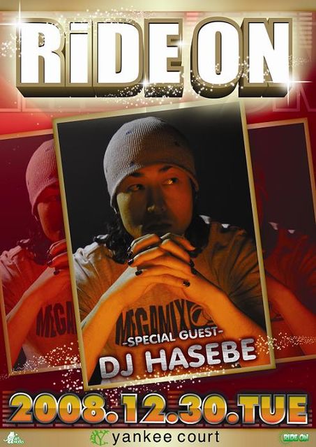 【RIDE ON】 HIPHOP,R&B,REGGAE,AllMix 12月30日(火) SPECIAL GUEST DJ : DJ HASEBE GUEST DJ : DJ ANYU (VLOCK SOUNDS) DJ : DJ HIGA-C / DJ ABICO / DJ $HIDAX /DJ KOH LIVE :MONIVA(JAROtheBLAZERIP.naco.SUGER SILL.DJ SASANORI)/ M Luv C /and mo.. MC:JAROtheBLAZERIP DANCE : coming soon.. レーザーと音楽を融合させ、パーティーフリークを増やし続けている注目イベント。今回はDJ HASEBE aka Old NickをSPECIALGUESTに招き08年最後に相応しい見どころ満載のBIG PARTYを開催! 【入場】 ADV:2,000YEN(ドリンク代別途\500) /DOOR:2,