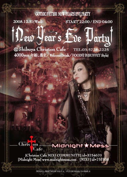 12月31日にキリストンカフェ渋谷店で行われる†GOTHIC/FETISH NEW YEAR'S EVE PARTY†