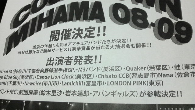 【bayfm78】主催 アマチュアロックバンドフェスタ カウントダウンライブ08-09 詳細決まりました オープニング 18時〜 Nana 18時30〜 10 11 Lamichill 23時00