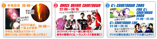 室内花火ありぃ〜の、屋外打ち上げ花火ありぃ〜の、そばすすりぃ〜の、飲んで騒いで踊って朝はみんなで初日の出を拝もう