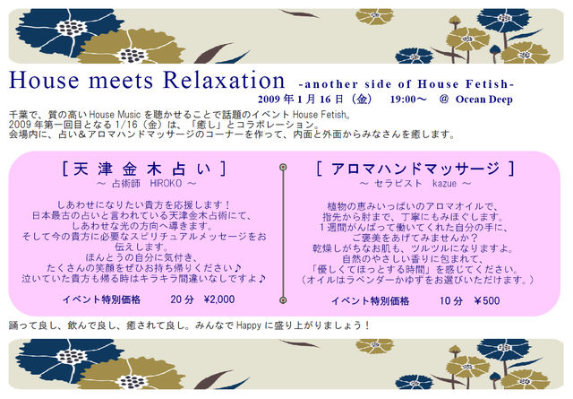 2009年第一回目となる1/16(金)は、「癒し」とコラボレーション