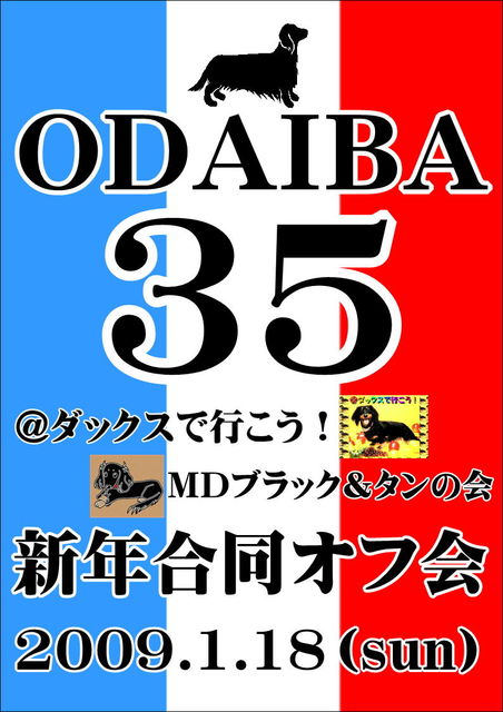みなさんこんにちは H(^0^)E(^-^)L(^○^)L(^-^)O(^○^)ー さてこの度第33・34回分のリベンジ東京オフ会をお台場で、「MDブラック&タンの会」と第35回合同オフ会として開催したいと思います (^−^)//"" パチパチ 参加表明はどちらか一方のみでお願いします。 BGMはこちら 東京での開催を希望される方から多くのメッセージをいただいておりました。 先月の開催では2度も雨天で中止という、@D史上前代未聞の屈辱となりました。 今回は、若干ゲ