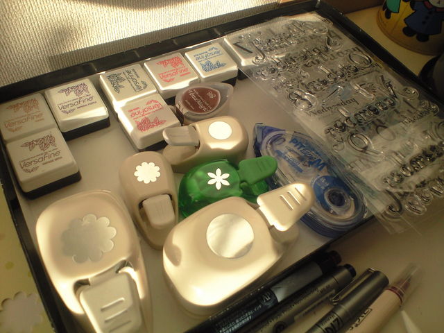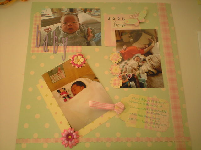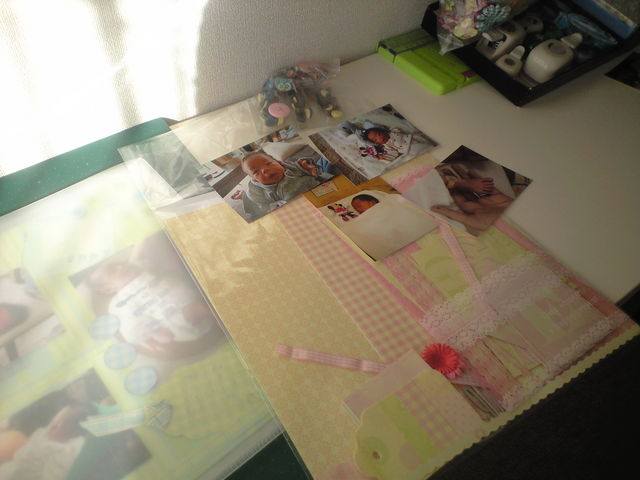 今日は午後からお友達のお宅へ スクラップブッキングに行ってきました たのしかった〜〜〜 たのしかった〜〜〜〜〜 ずっとやりたかったのですが なかなか機会がなく、、、 ベビーマッサージで私が資格をとる ケーススタディのころからお世話になっていた Sさん(マイミクみょんみょんさんです!) (みょんみょんさんmixiやめちゃったの) が 『 スクラップブッキング教室 』を開くことになったので さっそく体験 写真?の道具をつかって〜〜 見えにくいけど、、、 写真?これらのキッドを使っ