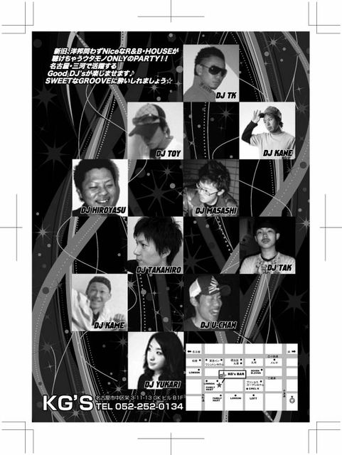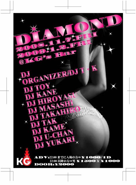 管理人様、告知失礼いたします。 2008年7月より、 名古屋で唯一といえる歌モノONLYのR&B・HOUSEイベント ☆ それが… 【DIAMOND(奇数月第1金曜開催)】 前回のVOL.3にて、ついに… 観客動員数100人突破しましたー♪ 名古屋だけでなく各地から着々と、 R&B・HOUSEウタモノ好きな方たちが集まりつつあります!! 名古屋・三河より歌モノを愛するDJ陣を集め、CLUB初心者の方や、 ゴリゴリは苦手だけど、R&Bは好き♡といった方を楽しませる内容の PARTY!! 今回のVOL4は… なんと年明けすぐのNEW