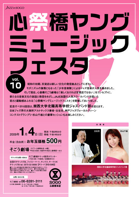 心祭橋ヤングミュージックフェスタ 開演14:00 開場13:30 料金500円(自由席) Pコード310-540 出演:関西大学北陽高等学校ジャズバンド部・古谷充・杉山千絵