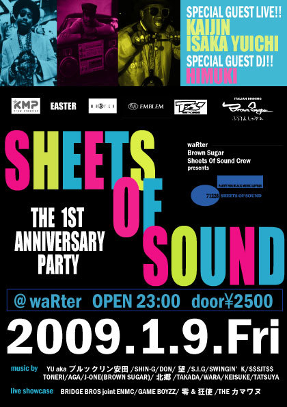 来る、2009年1月9日に、南柏waRterにて『SHEETS OF SOUND』の一周年イベントが開催されます。