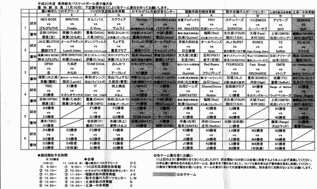1回戦は第4試合 Chome×2 と(ユニは緑)12:30〜 2回戦は第6試合 (たぶん)白河 と14:50〜 稲敷市新利根体育館