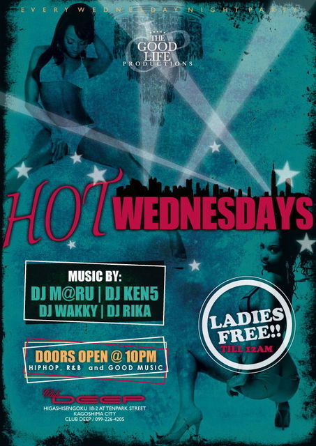 やばい音楽が1500yen(w1d)で聞けちゃうなんて贅沢じゃないでしょうか?? HOT WEDNESDAYS OPEN 22:00 DOOR 1500yen(w1d) DJ : M@RU,KEN5,WAKKY,RIKA 是非!!!!!!!!!!!!!!
