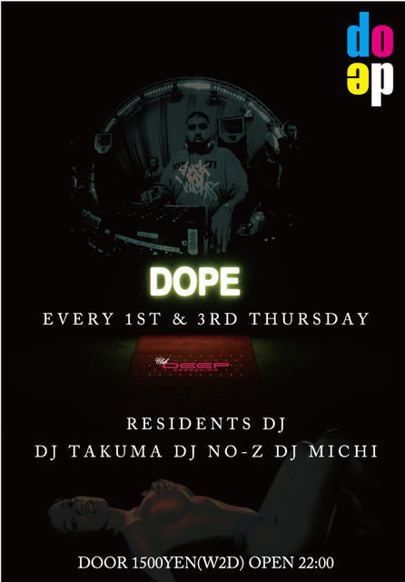 本日のclub DEEP 「DOPE」 door 1500yen(w2d) start 22:00 DJ : MICHI,NO-Z,TAKUMA music : HIP HOP R&B