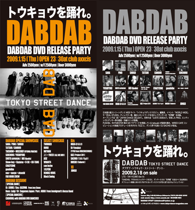 harukoとwattsです。 出ます。 踊ります。 久々です。 とりあえず仲は悪くないと思います。 遊びに来てねぇ♪ 2009.01.15(Thu) DABDAB 〜DABDAB DVD RELEASE PARTY〜 OPEN:23:30〜 genre: HOUSE/HIPHOP/all dance music Door 3000yen /nd,w/f 2500yen,Adv 2500yen 出演者--- ■DABDAB SPECIAL SHOWCASE SARA/PINO/SHOGO TATSUO/CANDOO TAISHOW+MISCHIEF(RYUMA/MACHA) SOICHIRO/YOSHIYUKI SHOTA(AFROISM)/AKI(Qualia) Show-hey+Kazuma+U-SK+KO-TANG CRAZYZONE goodvibe nao+naoya+atsushi FAR HOOK CREW ■DAB