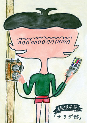 堀道広さんの初個展が行われます 「堀道広展 サラダ館」 マンガ家堀道広の漫画「ぺっとり君」の原画、 イラスト、うるしで作った小動物などの物産展です 期間:2009年1月15日(木)〜27日(火) 時間:12:00〜20:00(水曜定休) 場所:にじ画廊(http://www12.ocn.ne.jp/~niji/) 東京都武蔵野市吉祥寺本町2-2-10 tel*0422-21-2177 漫画ぺっとり君の販売や、うるしで作った小動物の販売、 観光地にありそうな顔はめ、その他へんてこなイラストが展示されるそうです