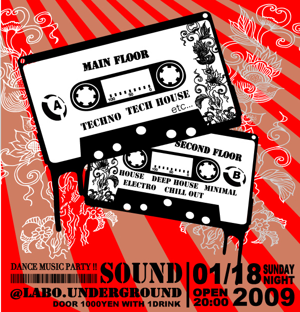 i.Sound PRESENTs Dance Music Party‘Sound’ Date:1/18(Sun)20:00〜Morning Place:Labo_underground Ent:1000(With 1Drink) -Guest Dj- MainFloor: Izumoto (STAR) Loki (STAR) ※昨年末、「石野卓球」の来宮で大変話題となった 「STAR」のレジデントDJの二人が満を持してSoundにBooking!! http://mixi.jp/view_community.pl?id=451264 2ndFloor: Shigeru (dig-House) ※「D.M.R.Record/Tokyo」ハウスバイヤーのキャリアを持ち、 レ