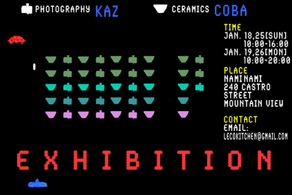 ベイエリア在住アーティストによる展示会をします! 入場料は無料となっておりますので皆様、ぜひお越し下さい。 内容:写真と陶芸(当日は作品の販売もいたします) 日時:1月18、25日 (10:00〜16:00) 1月19、26日 (10:00〜20:00) 場所:波浪(Nami Nami) 240 Castro Street, Mountain View アーティスト:Kazー写真 (http://fotologue.jp/camelback106/) Cobaー陶芸 (http://coba000.blog.shinobi.jp/) また当日は、有料ではありますがカフ