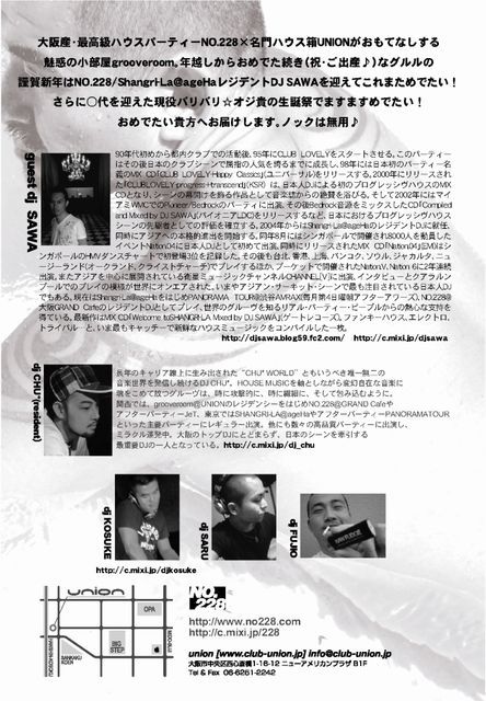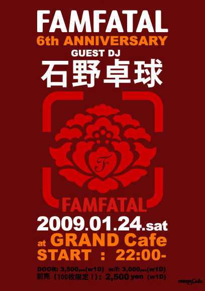 DJ・VJ・ダンサーはもちろん、企画運営スタッフに至るまで全てが女性によるパーティー「FAMFATAL」は国内では他に類を見ない活動にて大阪を軸に全国各地・アジアを駆け回り続け今年は6周年!FAMFATALは今迄同様、女性アーティストをピックアップしつつ今後は私たち女性から見て絶大的に尊敬出来る男性アーティストとの共演も視野に入れ、この6周年を機に更なる飛躍をしていきたいと考えました!その記念すべき第一回目のFAMFATAL男性ゲストアーティストは石野卓