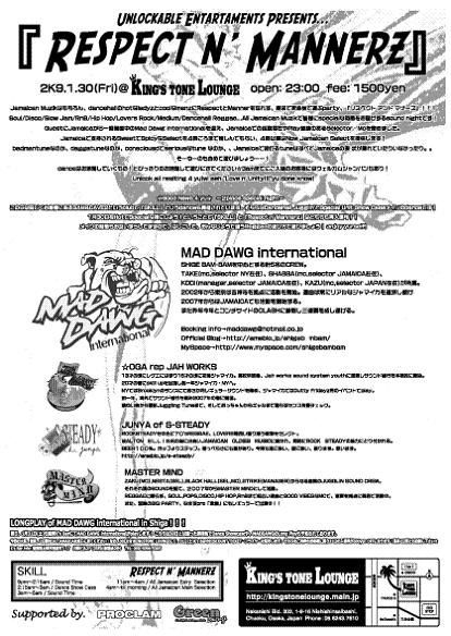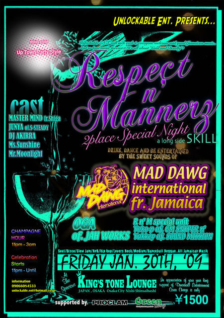 Jamaican Muzikはもちろん、DancehallのHotなLadyzとCoolなMenzにRespectとMannerを忘れず、朝まで死ぬ気で遊ぶParty、『リスペクト アンド マナーズ』!!!