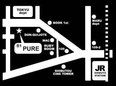 5 min walk from Shibuya Station - please see map above or mail for directions