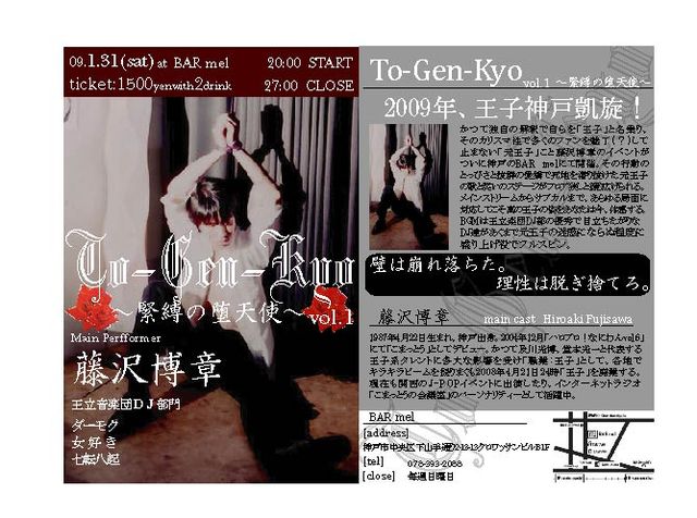 ADM:LADYs 1000yen[2D] MENs 1500yen[1D]