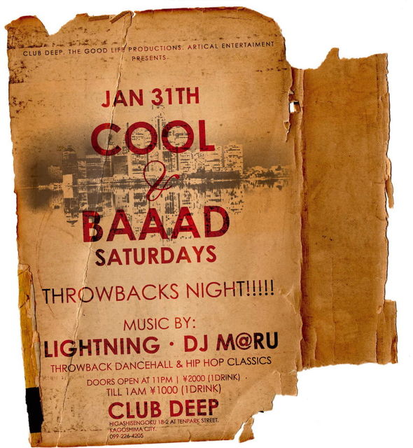 第五土曜のレギュラーDANCE! COOL&BAAAD@DEEP 今回はTHROWBACKS NIGHT!! LIGHTNING&DJM@RUの二組で 朝までやります!! 70.80.90.REGGAE,HIPHOP CLASSICS中心のDANCEです! 1時までの入場は1000YEN W1Dです! それ以降は2000円になるんで、 GUEST OKですのでメッセ下さい!! アダルトな夜、演出します!
