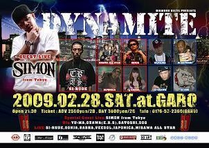 新EVENT!DYNAMITE一発目のゲストは、あのZEEBRAも大絶賛している、SIMON(サイモン)が三沢初上陸!そして、地元ゲスト軍から、三沢・弘前・五所川原・八戸を代表する、DJ、ラッパー、R&Bシンガー、REGGAE DJ,セレクターと実力派揃い!!