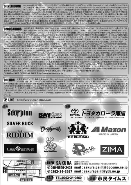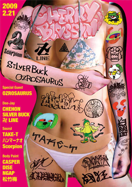 2009.2.21(SAT) Cherry Blossom Vol.9 ねずみSET慰安旅行SPECIAL!! SPECIAL GUESTS LIVE!! CHEHON 卍LINE SILVER BUCK OZROSAURUS TAKE−T スペシャルシークレットゲストLIVE!!! SPECIAL GUEST SOUND!! SCORPION the Silent Killer SPECIAL GUEST DJ!! ハンマーナオ SPECIAL GUEST BODY PAINTER CASPER DICE SKOLOCT 松竹梅 LIVE!! M.B.I/RYO/CAFE AU LAIT/ MOTO&KIN/SYOKKER/MOLHINE/YUKI/MIHO/AZU DANCE!! HOT GYA