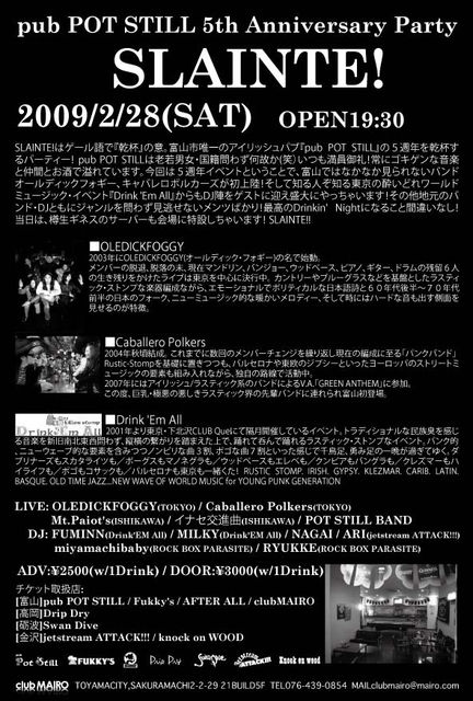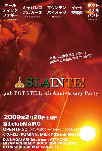 ■SLAINTE!はゲール語で『乾杯』の意。富山市唯一のアイリッシュパブ『pub POT STILL』の5週年を乾杯するパーティー!