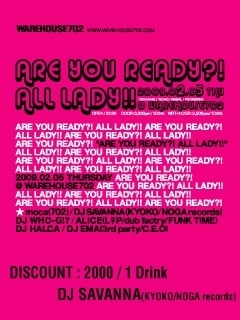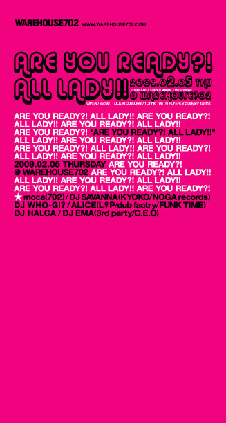 PRICE: DOOR :2500yen/1d with flyer and Girls : 2000yen/1d woman before 1 o'clock entrance FREE