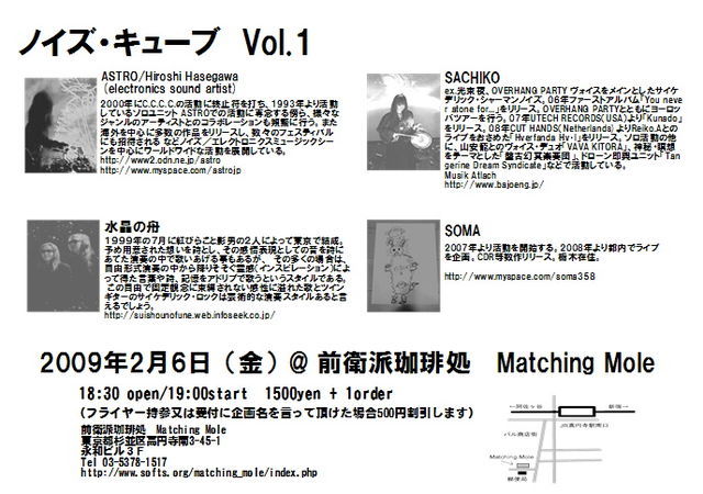 そして2009年一発目のnbsa+×÷は、UNITにてnbsa初参戦のOki Dub Ainu Bandを迎えてお送りします。ageHa、名古屋、福岡ツアーを経て更に全国へ波及しつつある、地下街から発信される音の革命に是非お集まり下さい。